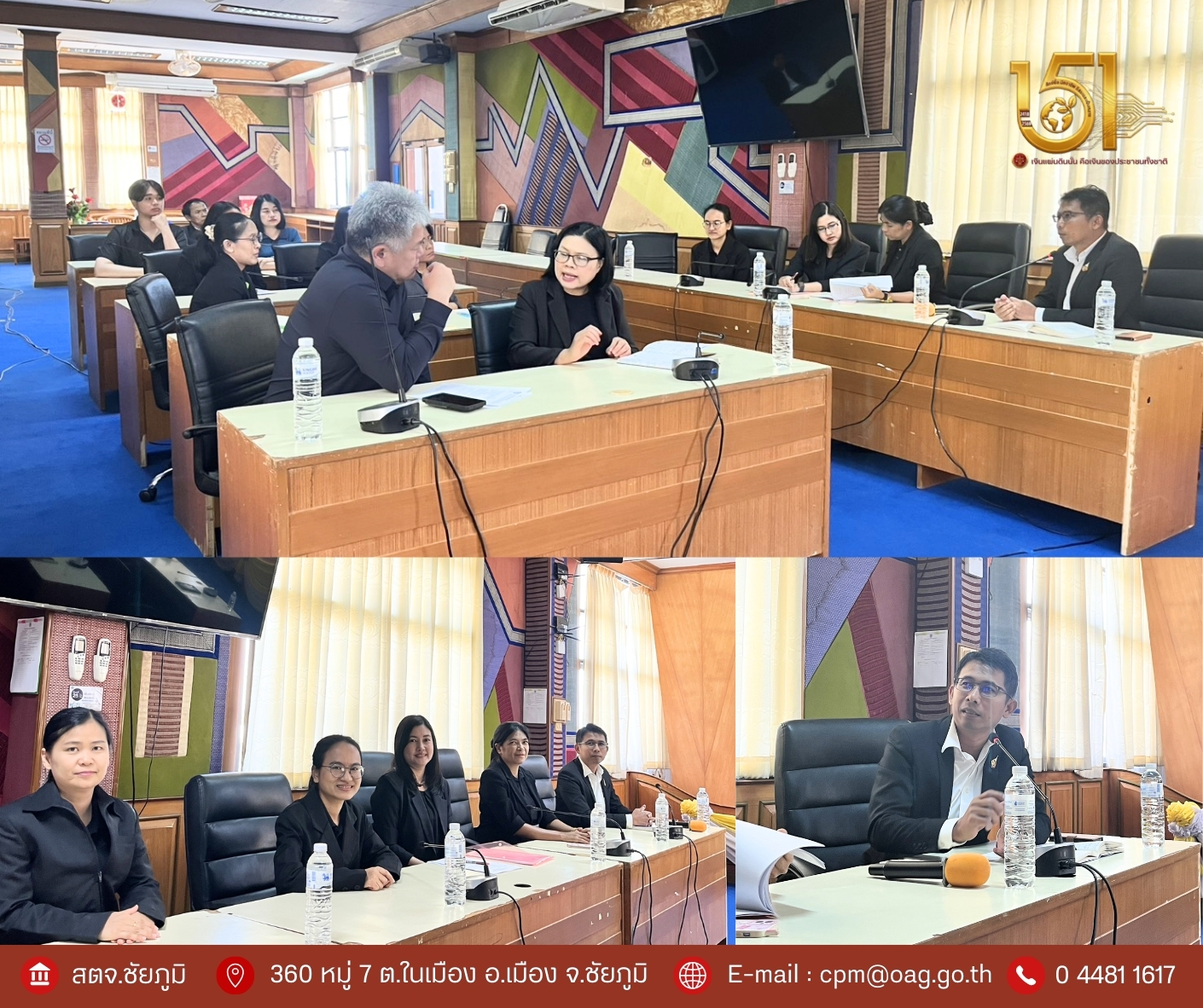 วันศุกร์ที่ ๖ มีนาคม ๒๕๖๙ นายชัยนันท์ ธงธรรมรัตน์ ผู้อำนวยการสำนักตรวจเงินแผ่นดินจังหวัดชัยภูมิ พร้อมด้วยเจ้าหน้าที่ เข้าร่วมการประชุมปิดตรวจรายงานการเงินสำหรับปีสิ้นสุดวันที่ ๓๐ กันยายน ๒๕๖๘ ของเทศบาลเมืองชัยภูมิ ตามพระราชบัญญัติวินัยการเงินการคลังของรัฐ พ.ศ. ๒๕๖๑ โดยมี นายบรรยงค์ เกียรติก้องชูชัย นายกเทศมนตรีเมืองชัยภูมิ พร้อมด้วยเจ้าหน้าที่เข้าร่วมการประชุมปิดการตรวจสอบครั้งนี้ เพื่อสรุปประเด็นข้อตรวจพบ ปัญหาอุปสรรคและแนวทางแก้ไข ณ ห้องประชุมอุบลรัตน์เทศบาลเมืองชัยภูมิ